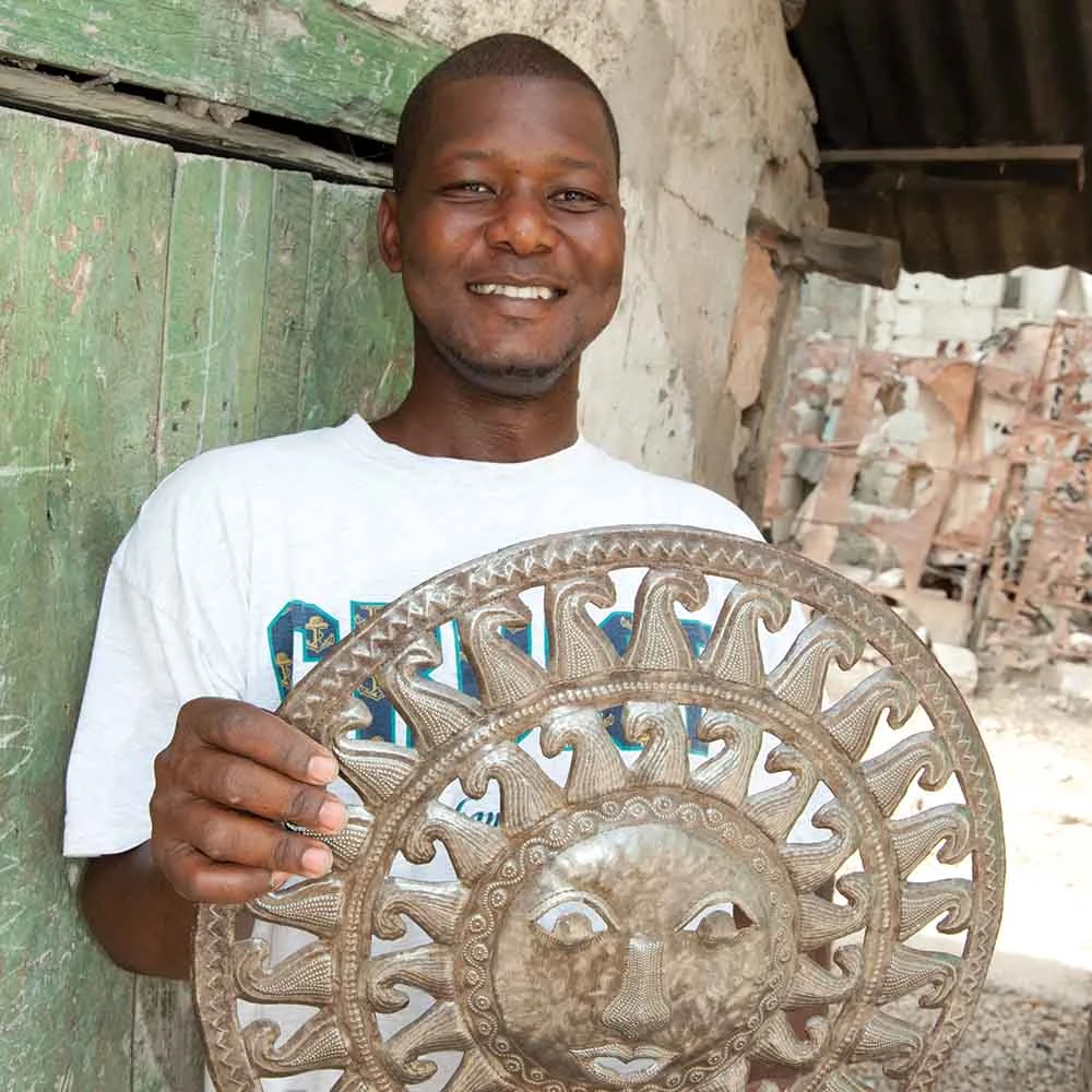 One of SERRV's longest standing partners, Comite Artisanal Haitien artisans work with old oil drums to create beautifully hand-cut, embossed, and painted works of art, earning a vital income, advance payments, and financial assistance for more than 120 families around Haiti.